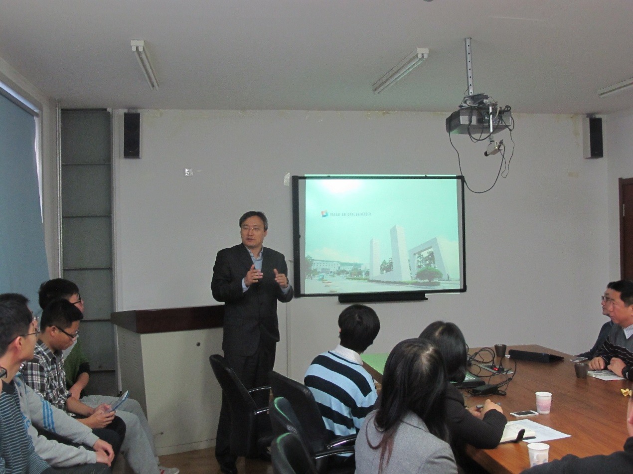 2015年1月20日-21日, 韩国国立韩巴大学机械学院Byungcheol Kwon教授和Hocheol Lee等一行9人对我院进行了为期两天的访问,就国际顶级设计项目、汽车创新大赛等领域的合作进行交流。这是继2014年11月该校来访我院后双边达成合作意向基础上的又一次深入交流。 我校运载学部副部长侯文彬教授、团委书记罗利老师,科研院孙红新老师,汽车工程学院副院长高仁璟教授、汽车实验室主任韩小强老师,以及凌魂车队的核心成员参加了交流。
